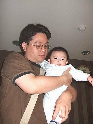 媽咪悄悄的走到爸比的身邊~