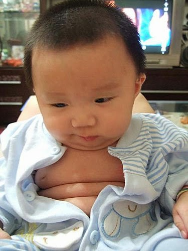 誰說我瘦瘦~ 我已經快四個月了~ 居然有婆婆看到我說:我是不是剛滿月啊! 那個婆婆就是沒有看到我的"三層肉肉" 雖然我只喝媽咪的ㄋㄟㄋㄟ! 小小一隻而已~ 可是我很健康~ 看看我的三層肉~就知道! 還有我的腿腿也是"三層肉肉" 但是...我不給看!哼~