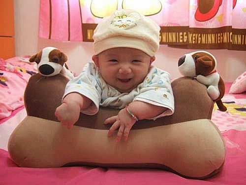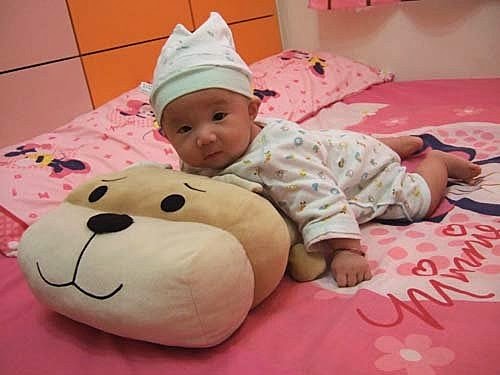 我三個月大嚕~ 媽咪說:我長大了! 比較沒有愛哭哭~ 會乖乖睡覺!也乖乖聽話~ 只是ㄋㄟㄋㄟ喝的少,要加油! 腿腿肉肉也變多了!