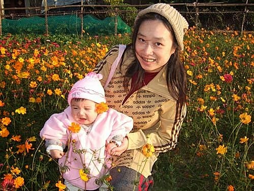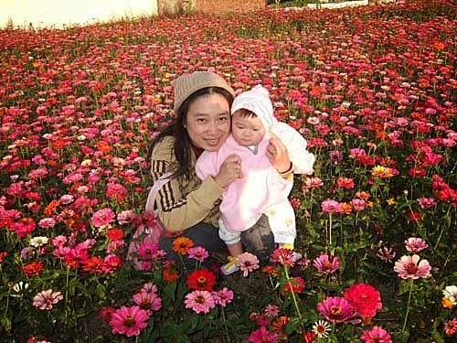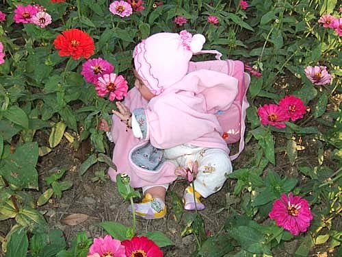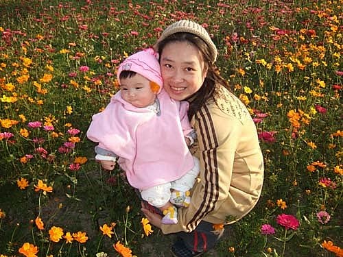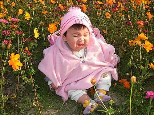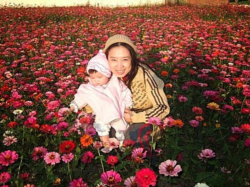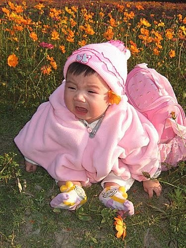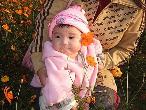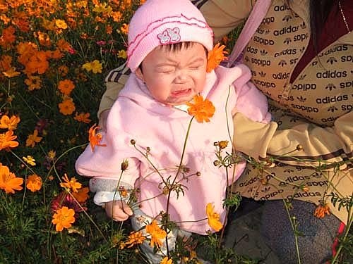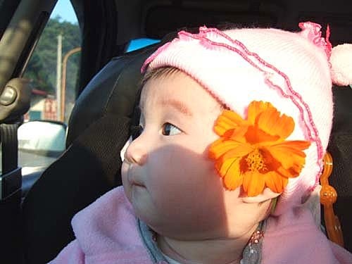 終於要邁向回家的路程了~哭的好累喔... 我要帶一朵花花回家.給爸比看~