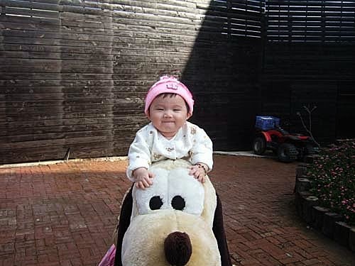媽咪帶我出來玩.好開心!我要唱歌給大家聽~看看我的笑容成了"一字型"了!