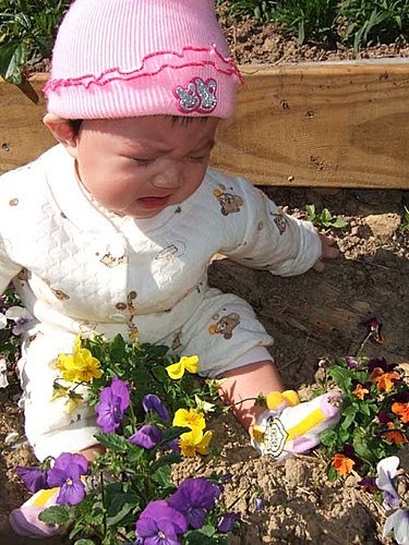 唉喲~泥土好髒呀~我的褲褲會髒兮兮..有好多小花花!