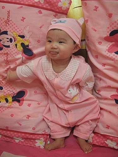 媽咪說:我都會"裝會" 還不會翻身,不會坐~ 就想學"站站"所以就叫我罰站站~ 而且,我喜歡學站站~ 每次站站的時候,就要有人幫我"拍拍手" 我就會笑得很開心~~~ 我才五個月大,就喜歡站高高~