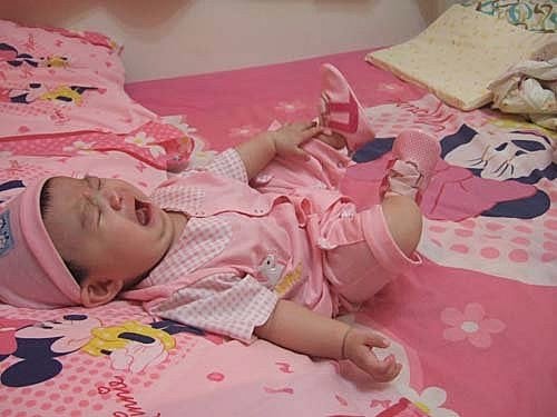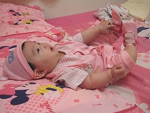 小阿姨送我一雙新鞋鞋~ 今天媽咪要帶我出門兜兜風~ 就幫我穿上新鞋鞋~ 我的腳丫子,第一次穿上"怪東西"