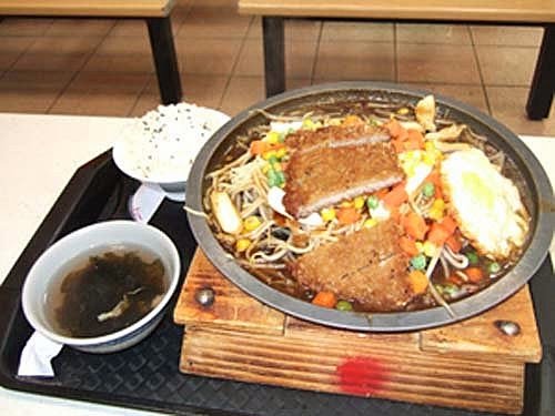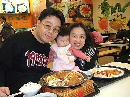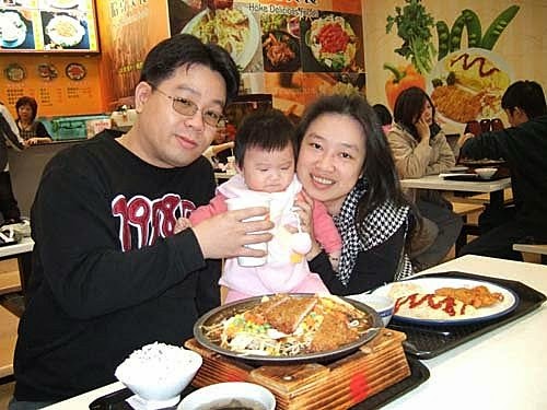 爸比跟媽咪的餐點來嚕~爸比吃豬排燒.媽咪吃豬排蛋包飯 ~