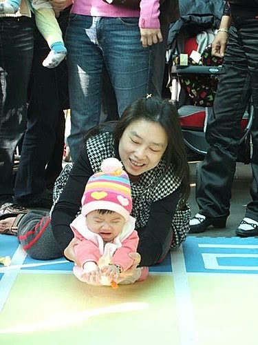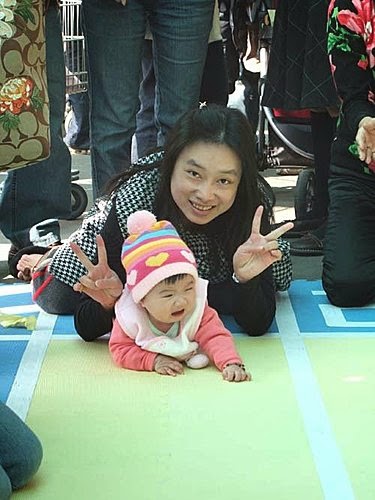 不管怎麼樣~先哭再說..才不會被人家發現我不會爬~要讓主持人阿姨認為我是"怯場"