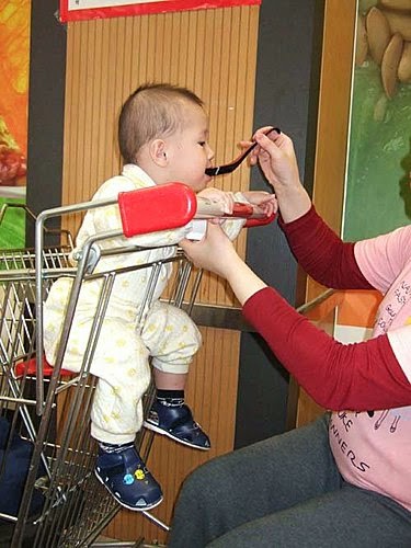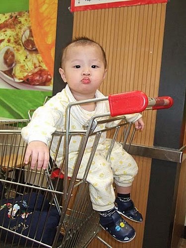 俊宇哥哥坐在"購物車"上吃飯飯,有夠可愛啦~心情好!