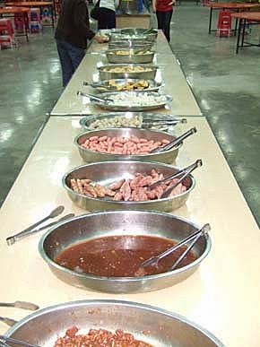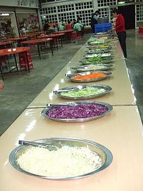 今天的晚餐吃"烤肉大餐"有自助式的沙拉吧!跟烤肉的材料~