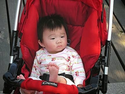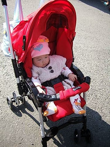 烤蕃薯味道太醺人了,媽咪趕緊帶我出來透透氣~這是媽咪跟爸比的活動證~沒味道..一點也不好吃~