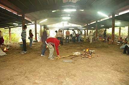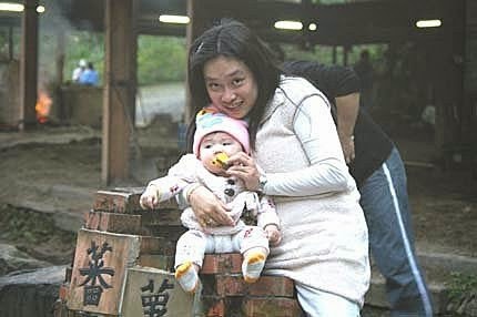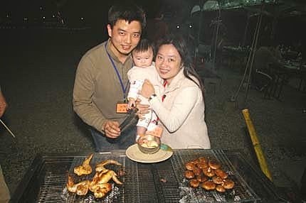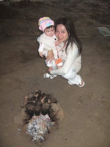 烤蕃薯的場地,也有媽咪公司的名牌耶~天氣好熱..我想脫帽帽~
