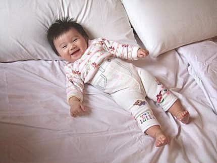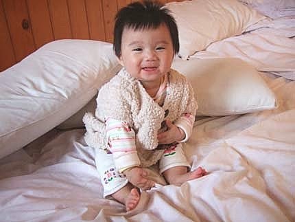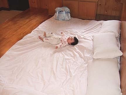 第一次睡這麼大的床床,我的心情"嗨"翻天~~