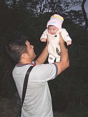 爸比你這樣抱我..好像是在迎神,我變成一尊菩薩了~