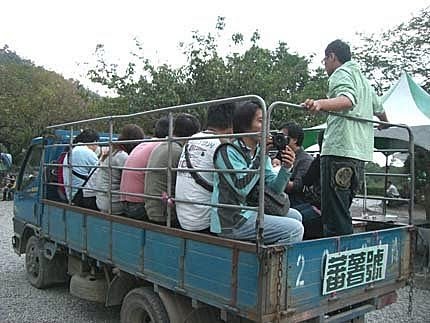 總共有20個叔叔阿姨,加上4個小小孩,分裝在五台車車上~
