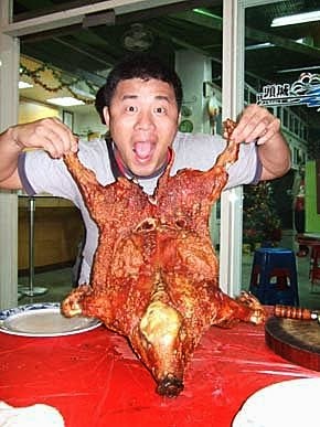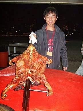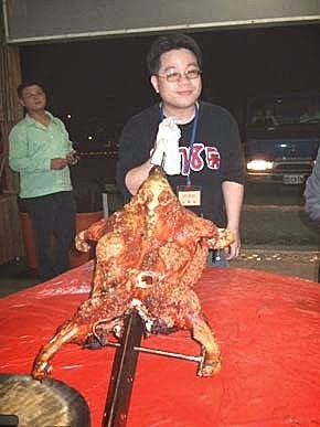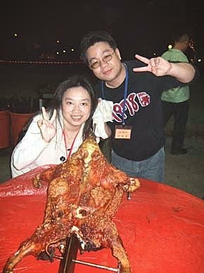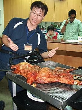 烤乳豬,是沛絲阿姨花錢請我們大家吃的,要事先跟頭城農場的阿姨定,5000元大洋~好好吃喔!