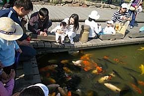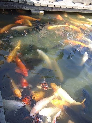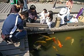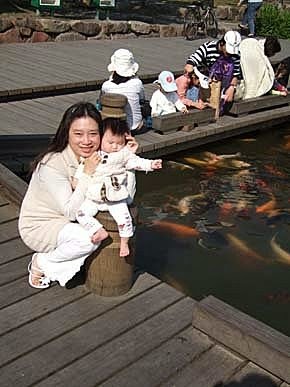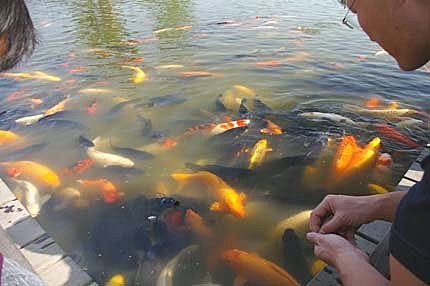 哇~有好多的大魚魚喔!志宏叔叔拿飼料,要敎我餵魚魚,我可以先試吃看看..好不好吃嗎?