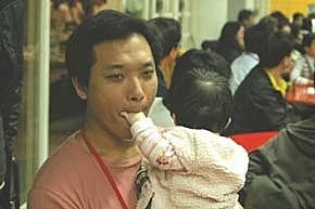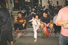 這麼多人..在排隊等什麼呀?原來是肚子餓了..要買"大腸包小腸"啦!