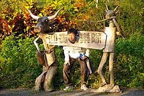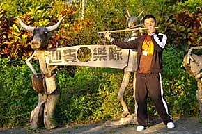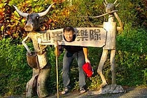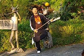 建忠叔叔扮農夫,是想去種田嗎?吼咿~看我的"飛踢"功~