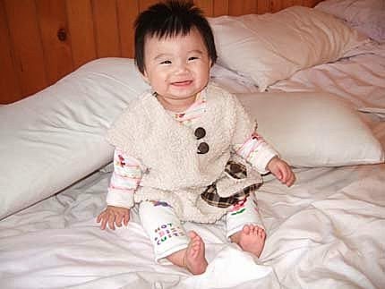 我穿的這件"羊咩咩"小背心,是跟舅媽借的喔~
