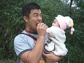 搞笑叔叔很認真的推拷蕃薯的"房子"喔~正程叔叔的房子推的又高又大!