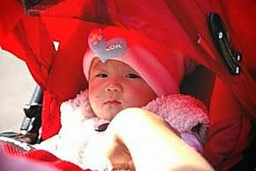 我跟庭庭小姐姐都一樣,坐紅色的車車~庭庭小姐姐很喜歡摸我喲~