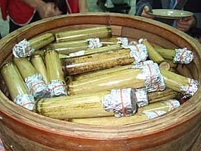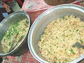 還有煮熟的竹筒飯,炒飯,炒米粉,爸比很厲害,連續喀了三支竹筒飯喔!