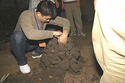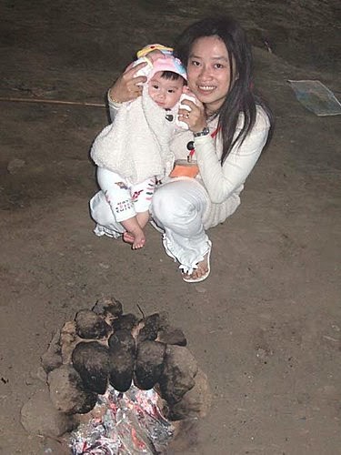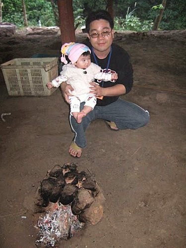 這麼快..蕃薯烤好啦~才不是哩,是頭城農場的叔叔先烤好,賞給我們吃的啦~好好吃!我也很愛吃喔~
