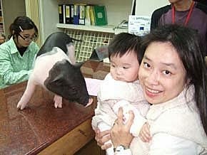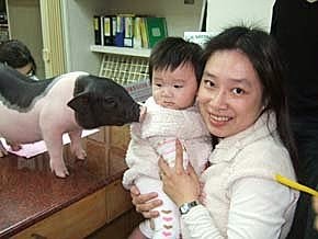 大家都搶著跟小豬豬拍照,真的好香喔~小許叔叔的跟豬豬的合照,太嚇人了吧~
