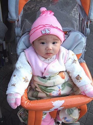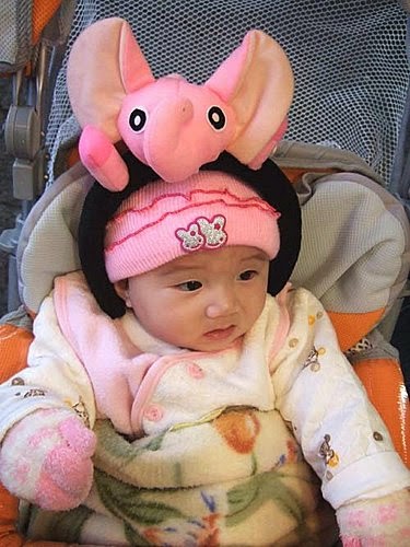 媽咪幫我戴了帽子.手套.還蓋上毛毯~ 就怕我著涼了~~~