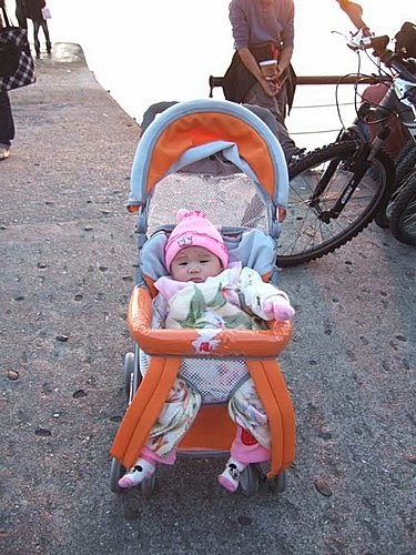 淡水的人..有夠多的啦~~ 媽咪幫我推車車..都快沒有空間可以走路了!