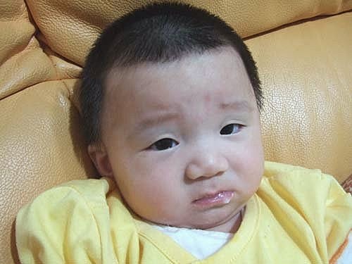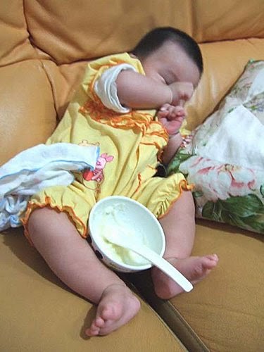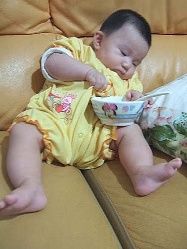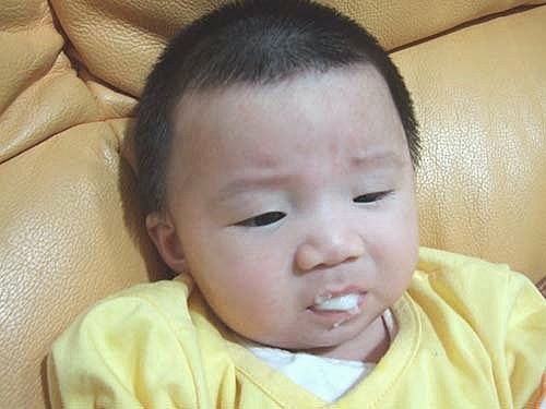 媽咪說:我快四個月了! 又不愛喝ㄋㄟㄋㄟ! 決定!要讓我吃點"新玩意" 那就是"水果米精"