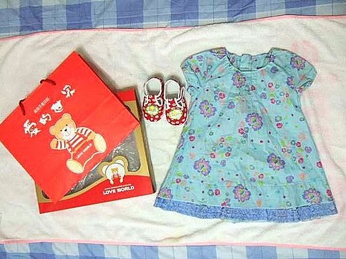 美惠大阿姨送我的"小洋裝"和紅色學步鞋