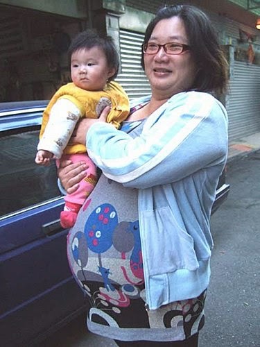 小阿姨的肚肚有夠"大"坐在上面好舒服~像個小沙發,不知道?小妹妹有沒有被我"壓扁扁"了!