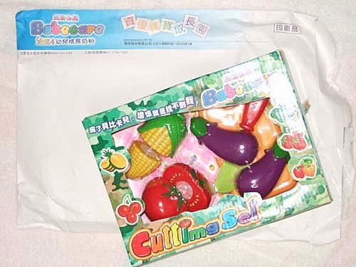 我又有新玩具了~ 因為,媽咪推薦小阿姨作 "貝比卡兒"的會員~ 所以,收到了一份推薦禮"切切樂" 媽咪說:這個玩具很好~ 可以訓練我的手指"小肌肉"的發展! 小小一盒,很可愛喔!