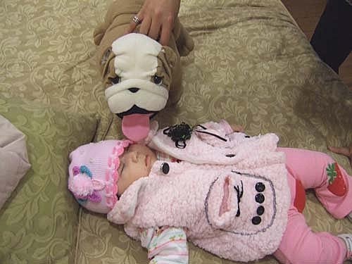 她在忙拍照的時候,玉珊阿姨抱我搖搖,我就睡著了!