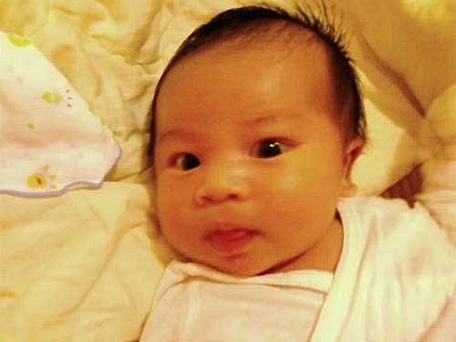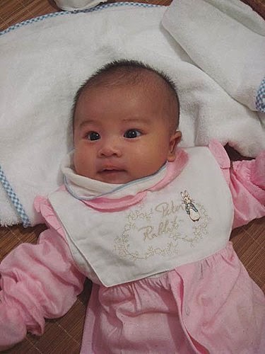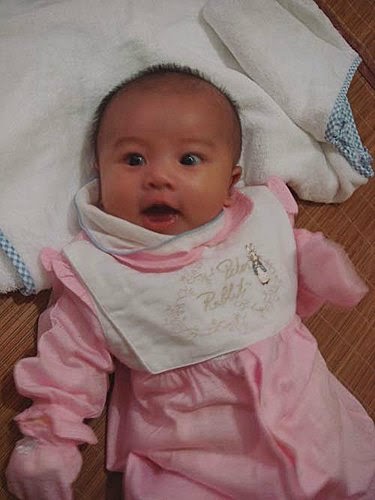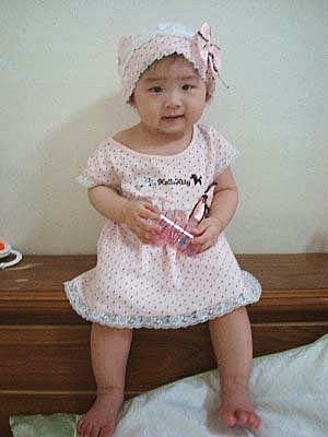 我最大的特色就是.....到現在還不會"翻身"啦~只會咿咿叫~因為身材算"苗條"所以還在用"S"號布布