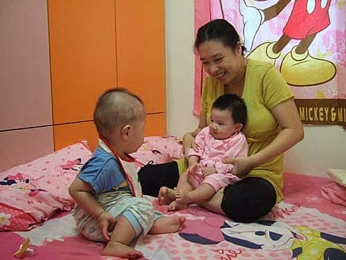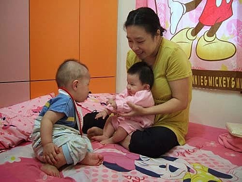 媽咪捏捏俊宇哥哥的臉臉說:乖~不可以欺負小云云喔!