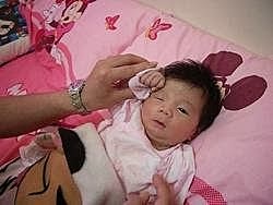 今天阿嬤帶云云的衣服去"收驚" 回來的時候,拿了一些"作法"的材料! 幫云云洗臉臉!洗手手!洗腳丫! 嘴中還唸唸有詞~超專業的阿嬤! 媽咪最後只聽懂兩句話~ 就在阿嬤捏捏云云右邊的耳朵時~ 阿公說:無驚!無驚!吼別人驚~
