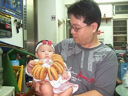 媽咪壞壞!綁了好多餅乾掛在我脖子上~
