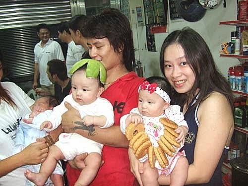阿嬤說:收涎~收答答~呼哩阿母.明年生懶X!