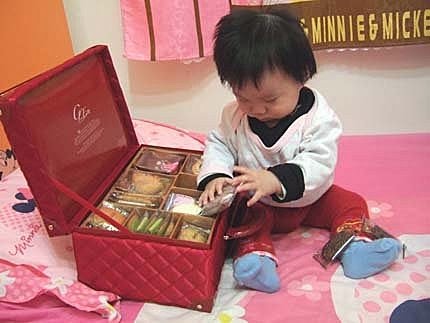 媽咪說:要留給我當"嫁妝"耶~好開心喔!!!打開看看有什麼好吃的?