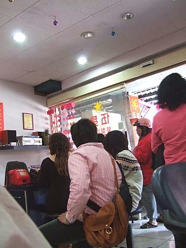 一到店家~~~我的天啊!!排隊排到門口耶~~還有人拿著板凳坐~~