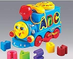 型認知火車會自動轉向+燈聲光+音樂+積木+電話