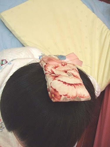 我的平安袋上還有一個可愛的小蝴蝶結喔!平安袋放在頭上~也可以保平安嗎?