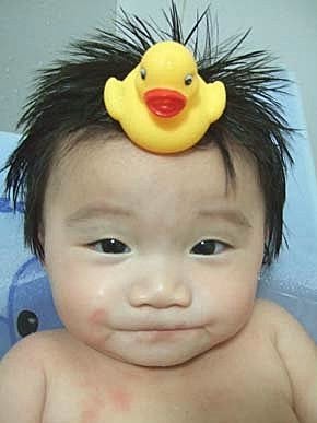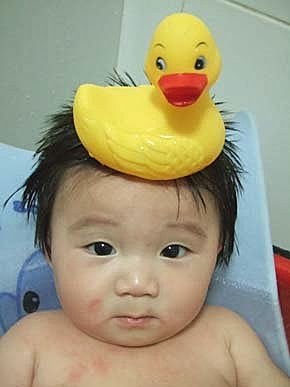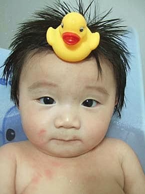 大鴨鴨爬到我的頭頂上了,看看我的頂上功夫好不好~~~糟糕..不小心~露了一點