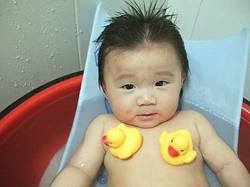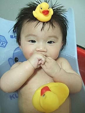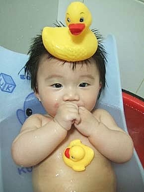 水水快流到我的眼睛了啦~~~我也要幫小鴨鴨洗澎澎....