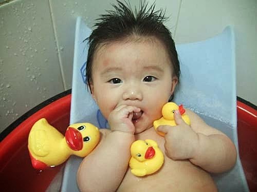 我最愛洗香香了,現在我多了一個好朋友"小鴨鴨"陪我一起洗澎澎喔~
