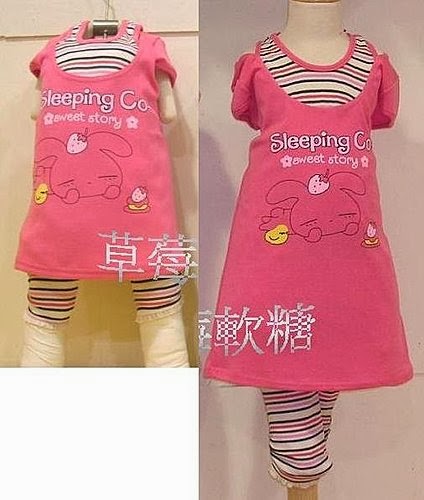 可愛條紋假2件草莓兔長T小洋裝 合購寶寶+媽咪款加碼優惠價$250元