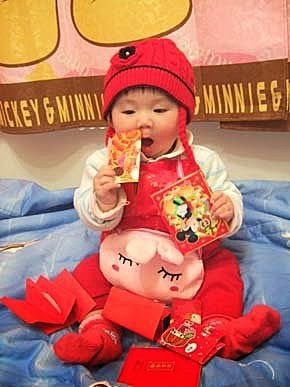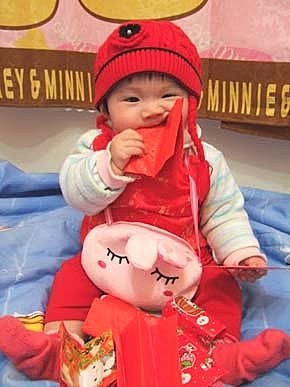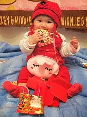 媽咪過年的時候,幫我打扮的很喜氣洋洋喔!