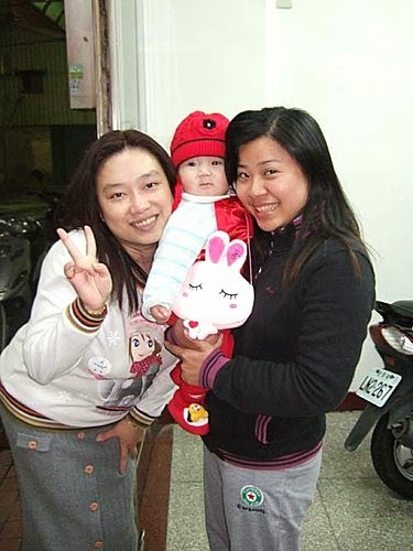 還讓我背了一個粉紅兔兔包(小阿姨送的)給我裝紅包用的啦!