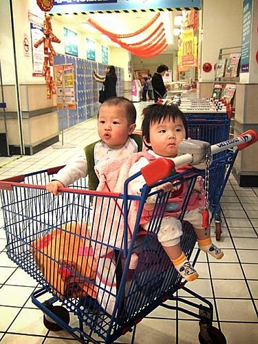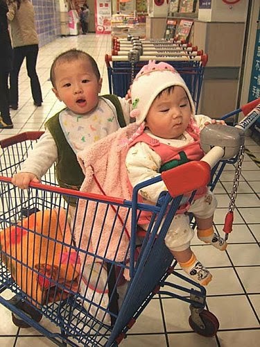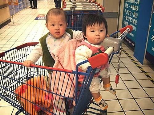 媽咪帶我們去家樂福逛逛街~~~我坐前面,俊宇哥哥站後面~一直在保護著我喔!